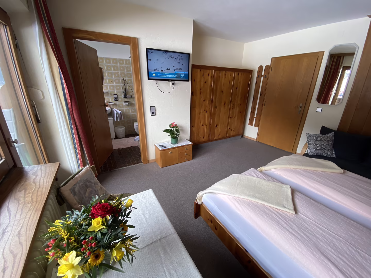 Unsere drei Doppelzimmer befinden sich im ersten Stock des Hauses und geben einen wunderbaren Blick auf den Hausberg Penken und die umliegende Bergwelt frei.